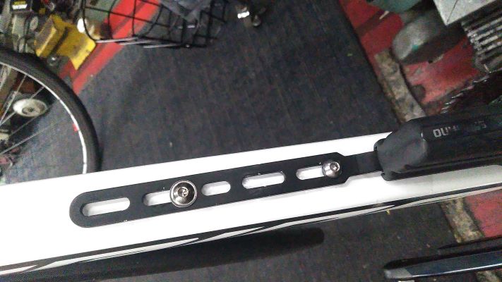 カーボンフレーム・ボトル台座周りの剝離・新しい台座に交換・回りは3重にガボンを補修。ネジは少し長めに交換。 簡易塗装仕上げまでワンストップで対応。